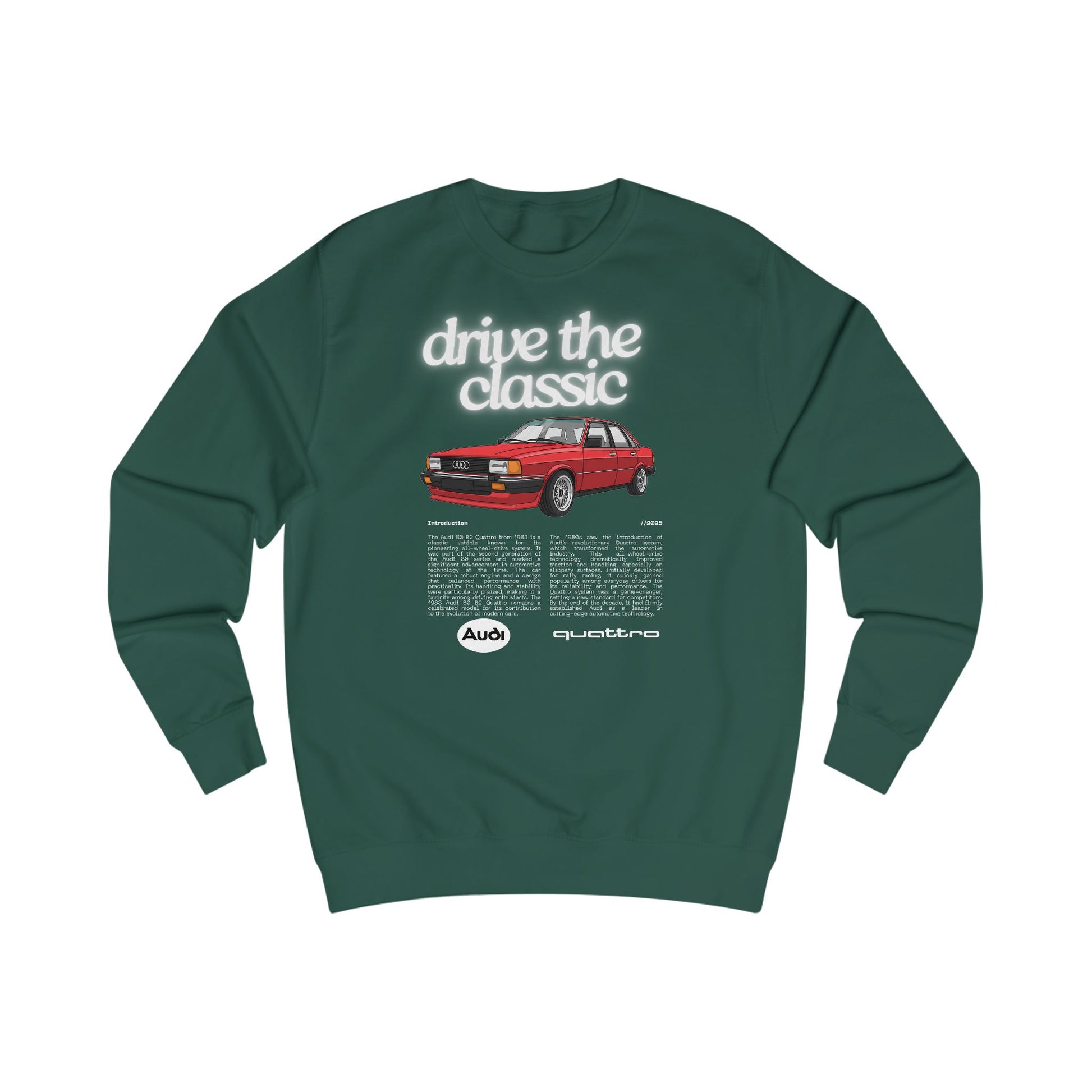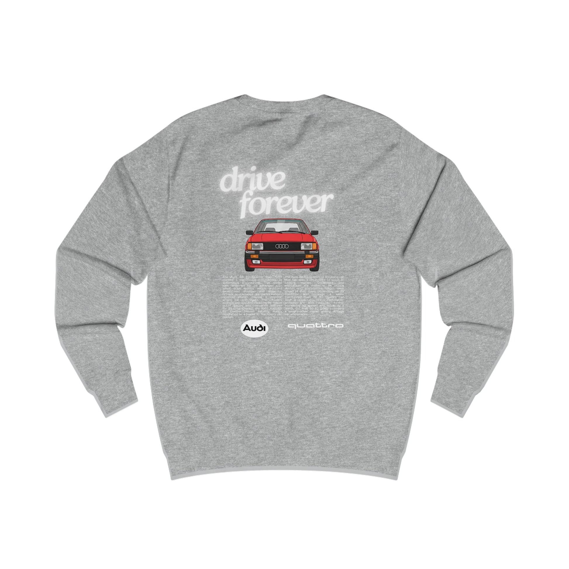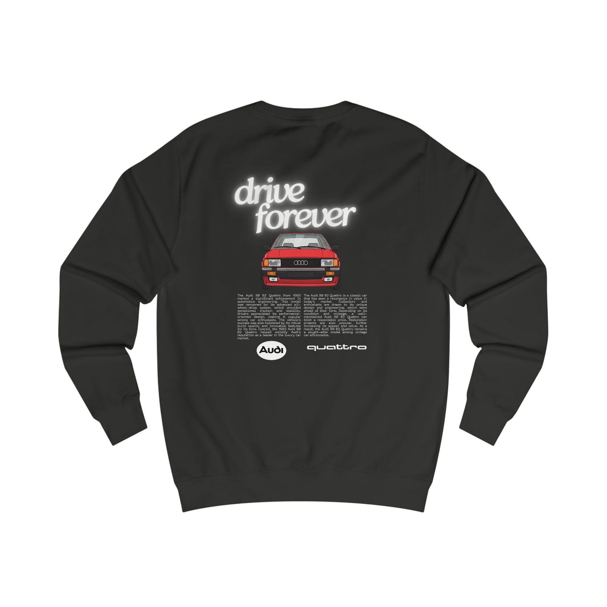This audi 80 b2 quattro sweatshirt exudes a cool and vintage vibe, perfect for car enthusiasts and retro lovers. It is ideal for casual outings or lounging at home. Great for gifting during birthdays or Christmas for those who appreciate classic cars.