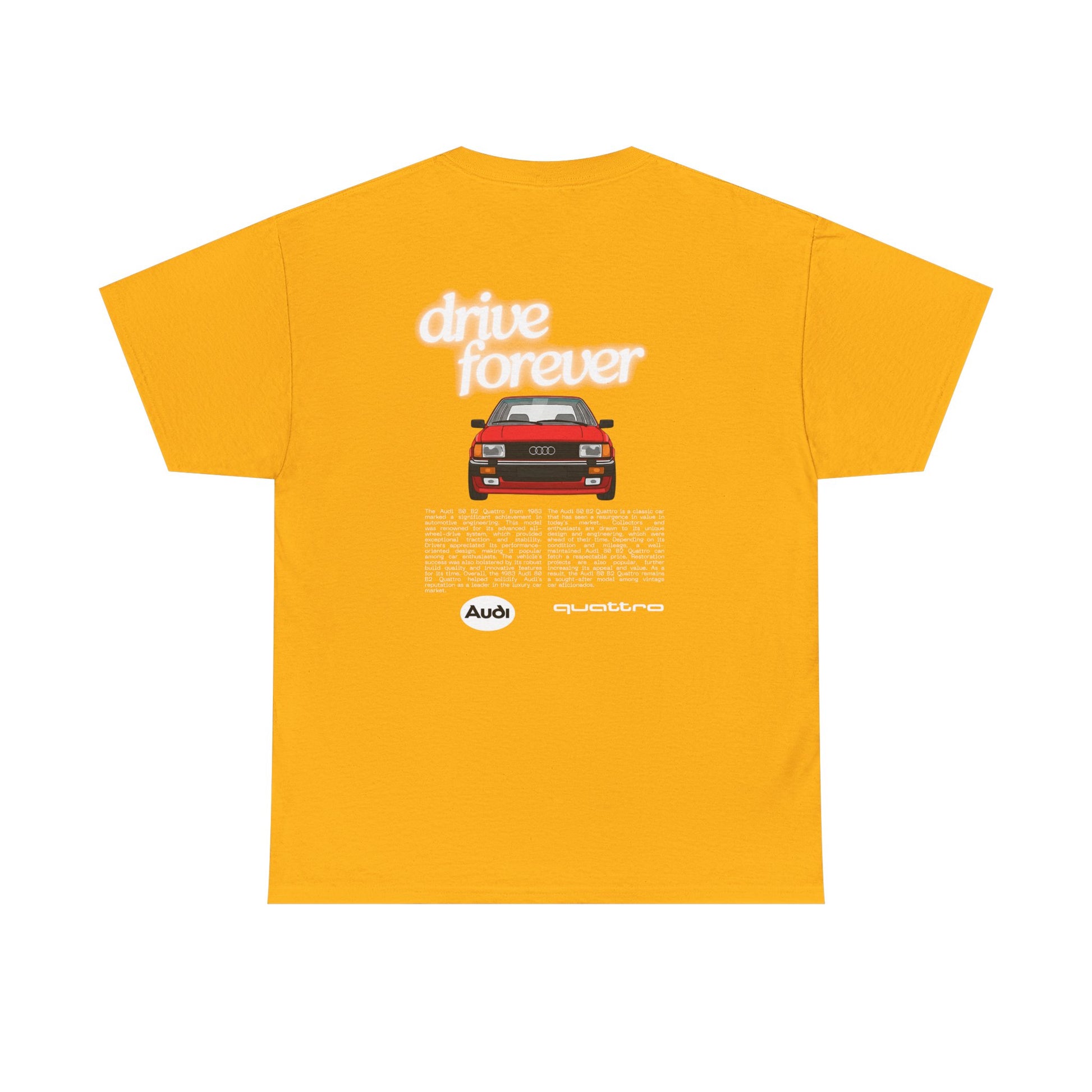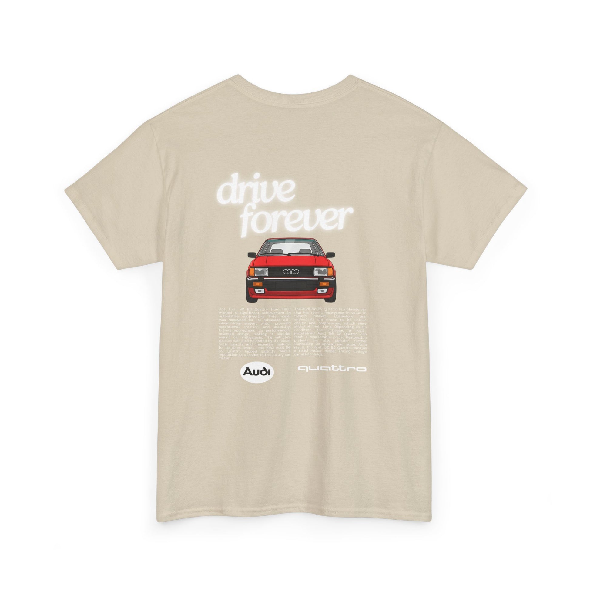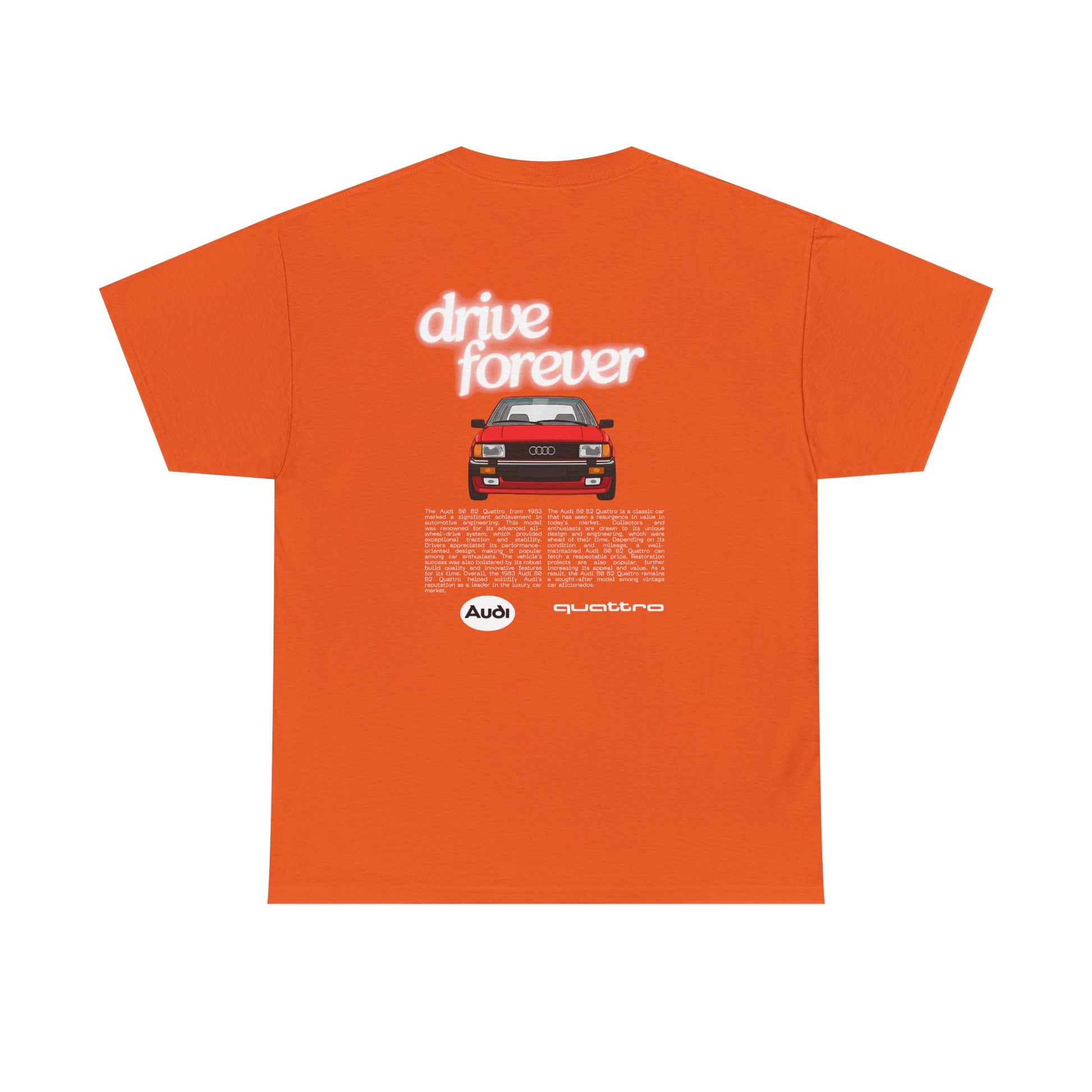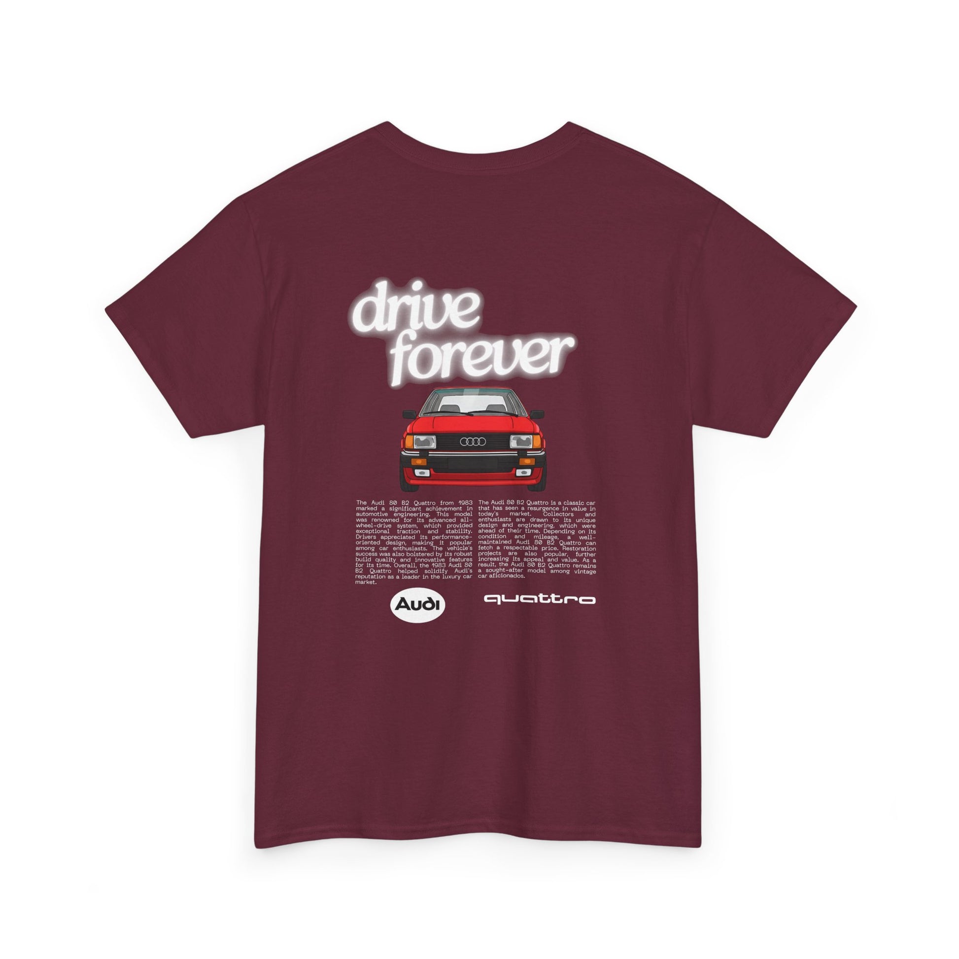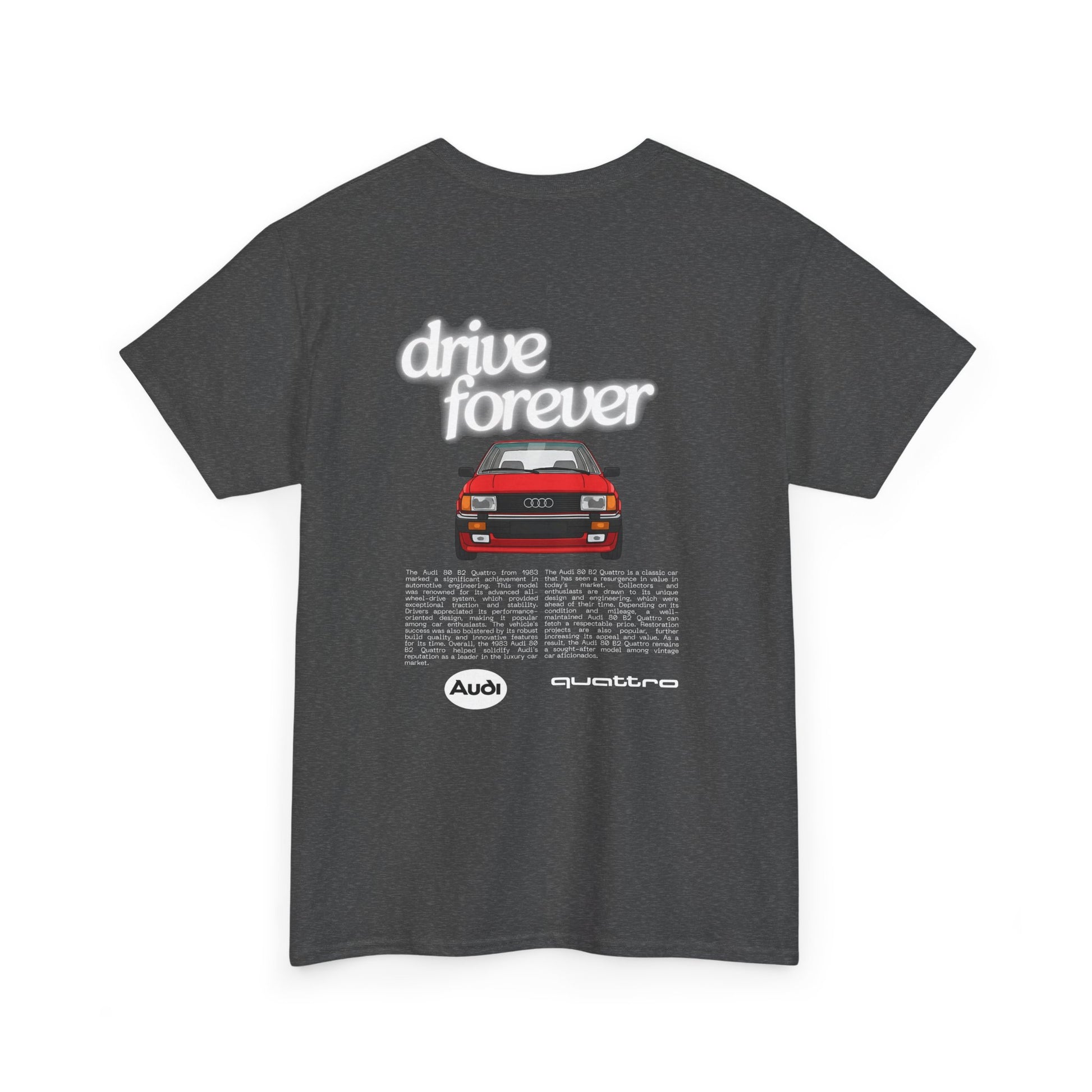 This Audi 80 B2 Quattro t-shirt exudes a vintage and classic vibe, perfect for car enthusiasts and fans of retro vehicles. It can be worn casually or at car shows, race events, and automotive gatherings. Ideal for adults who appreciate unique and nostalgic designs.