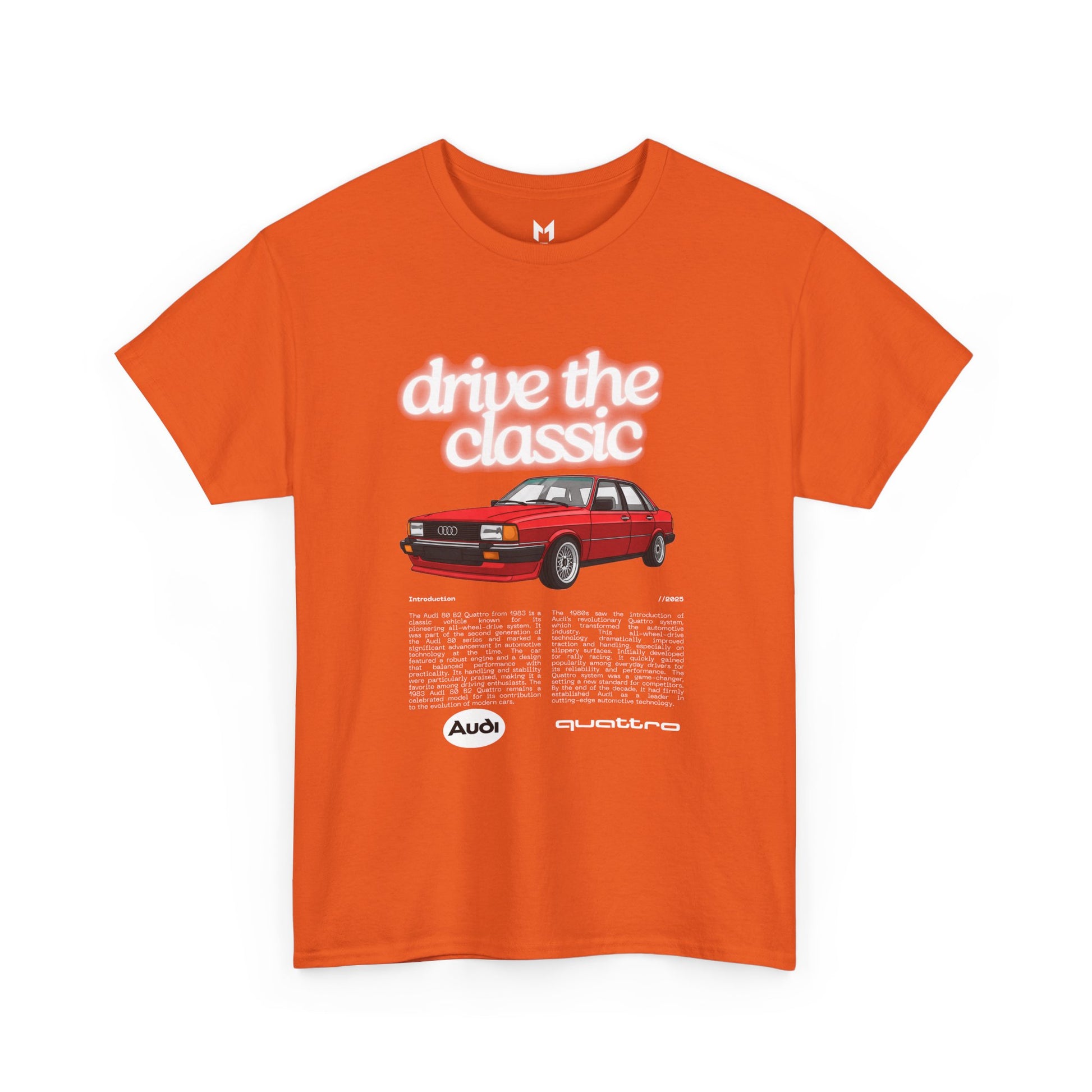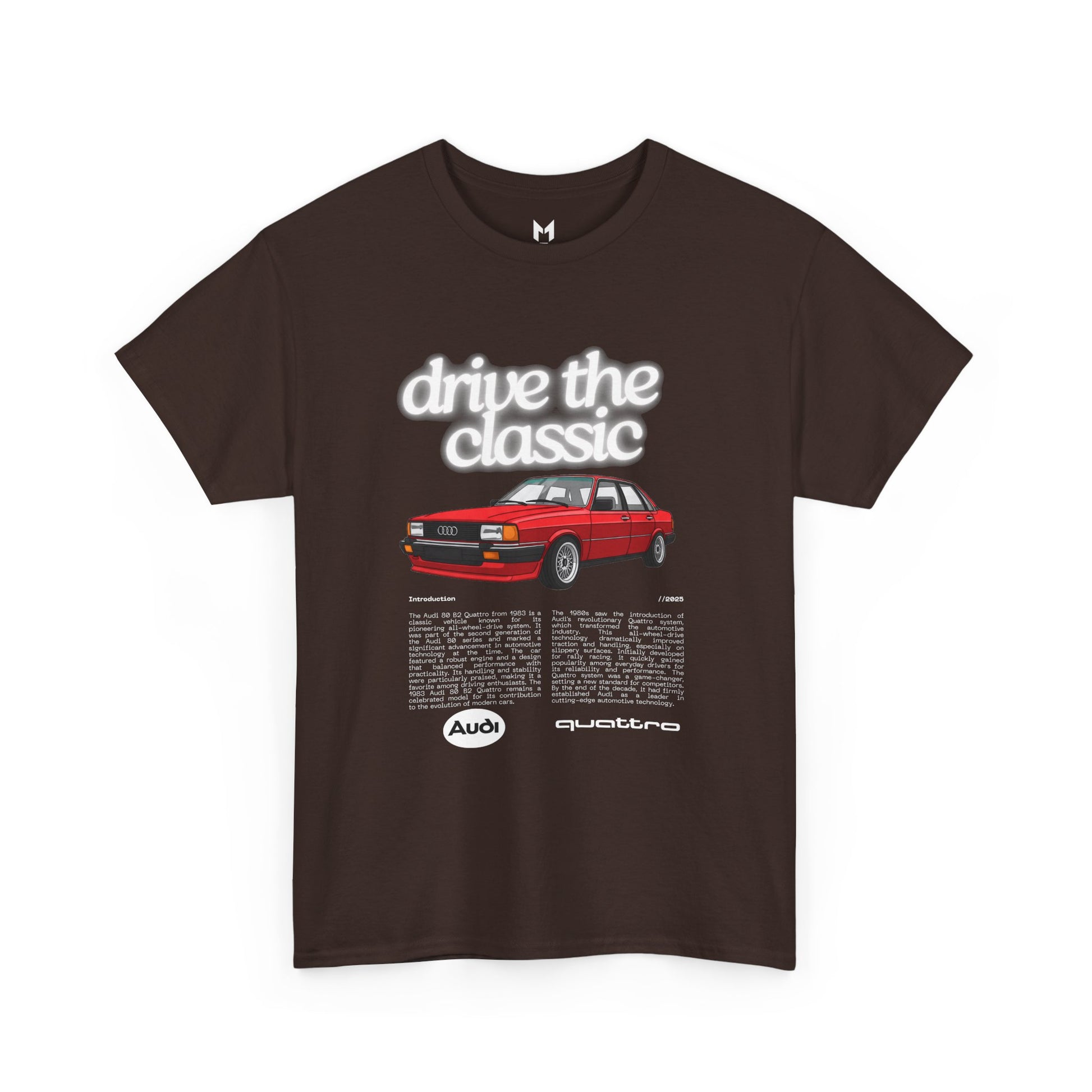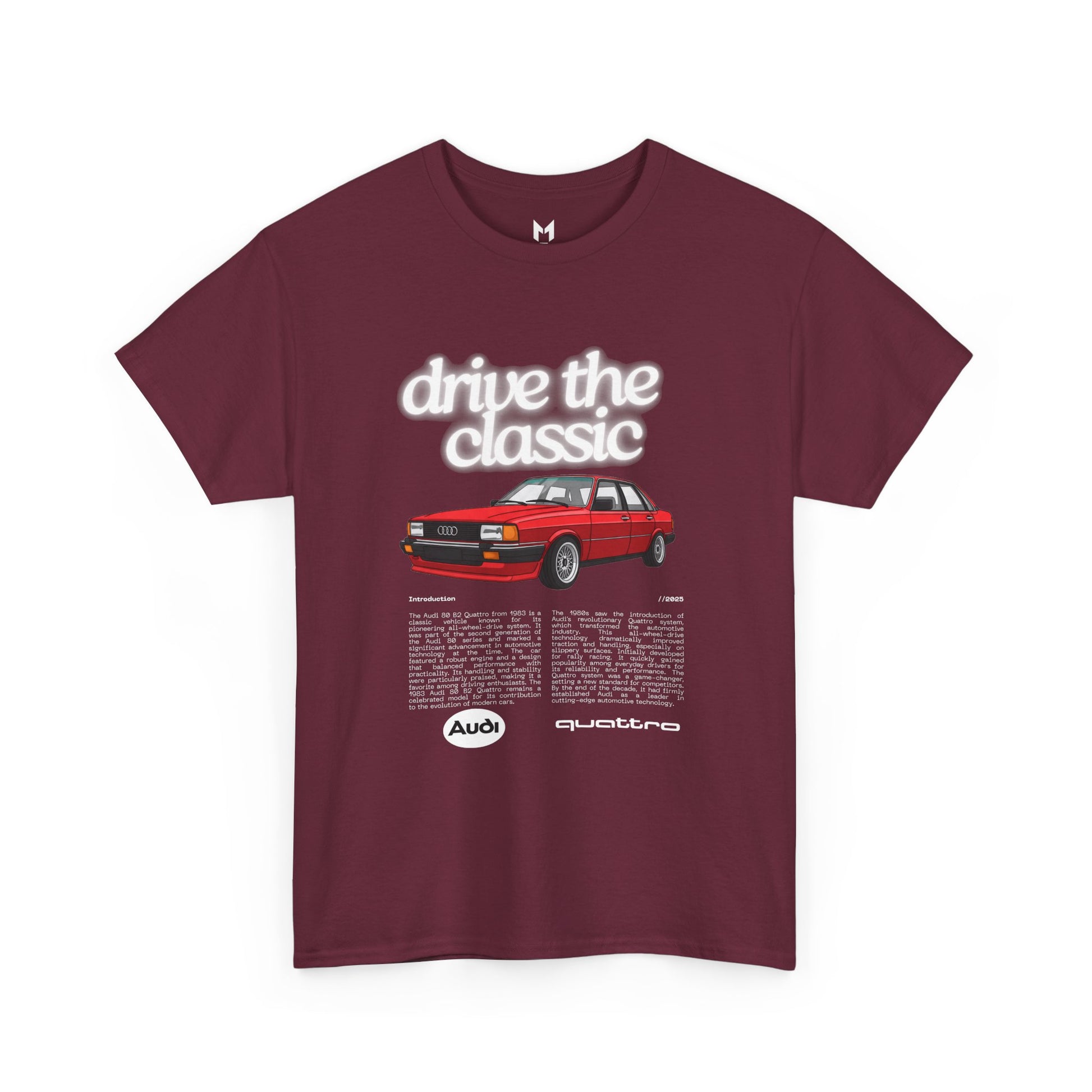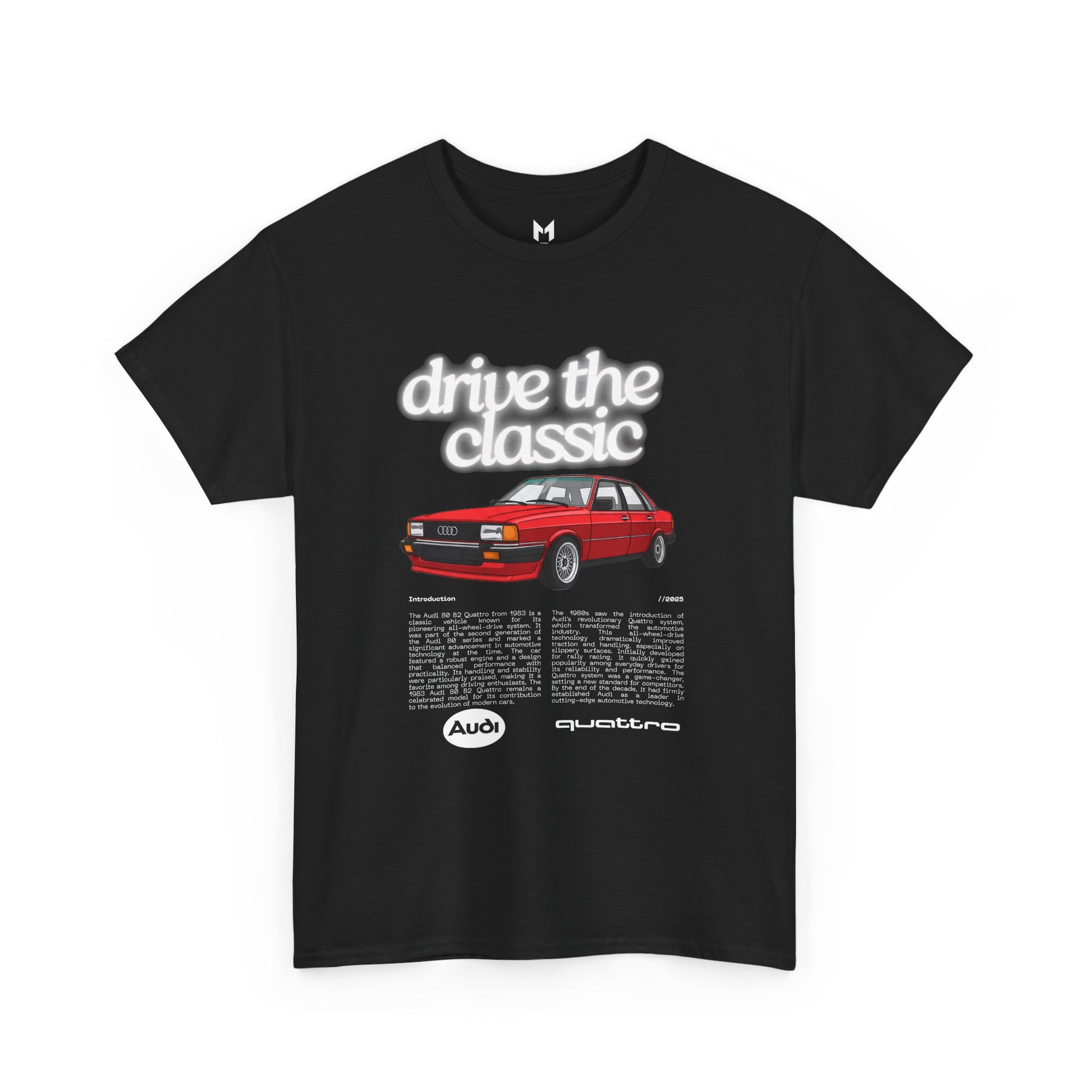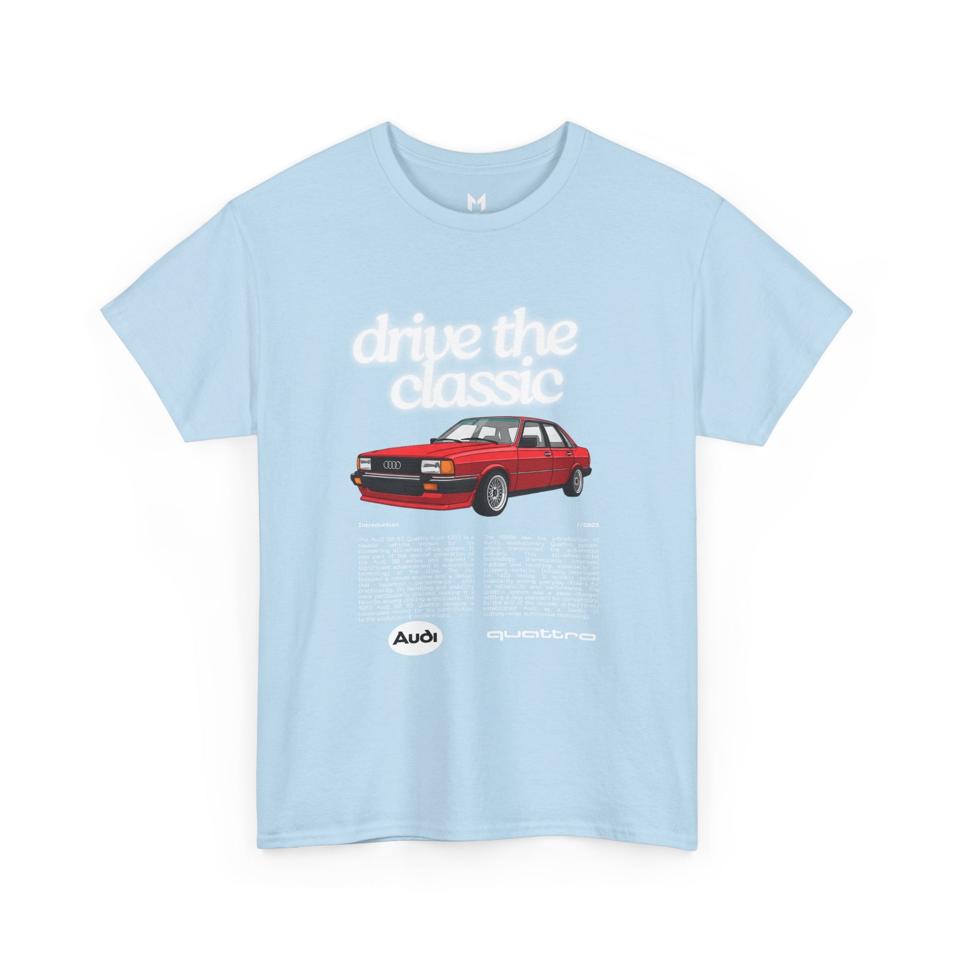This Audi 80 B2 Quattro t-shirt exudes a vintage and classic vibe, perfect for car enthusiasts and fans of retro vehicles. It can be worn casually or at car shows, race events, and automotive gatherings. Ideal for adults who appreciate unique and nostalgic designs.
