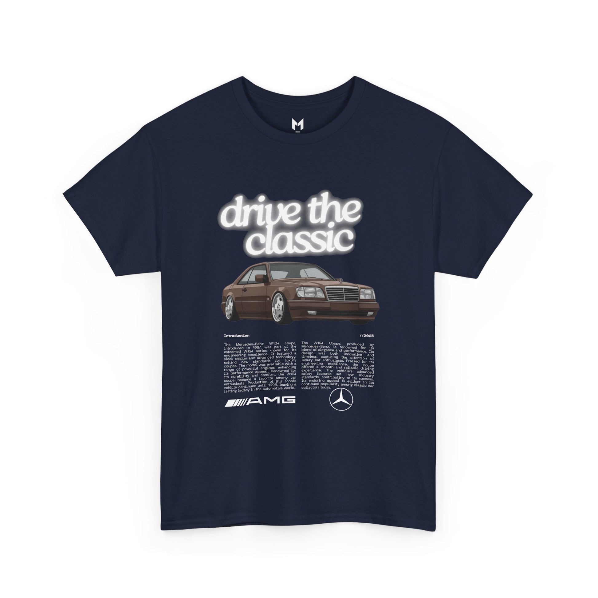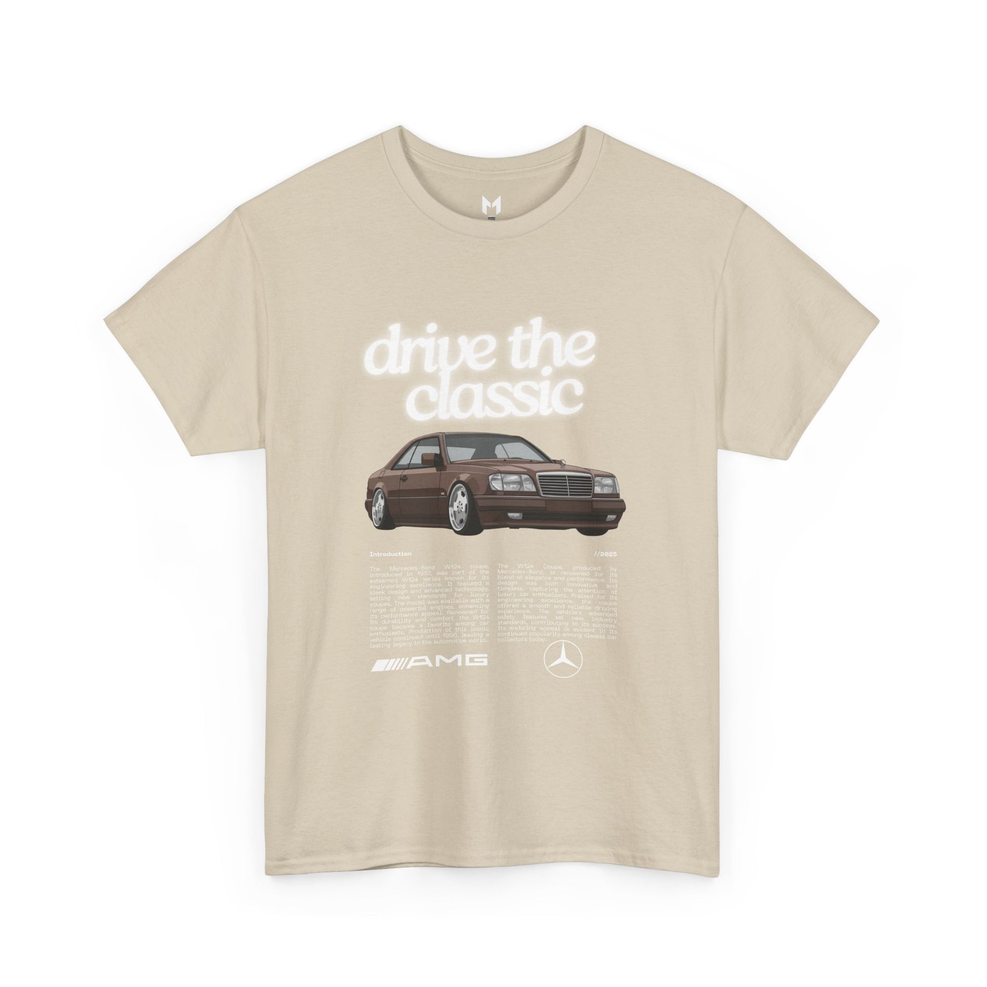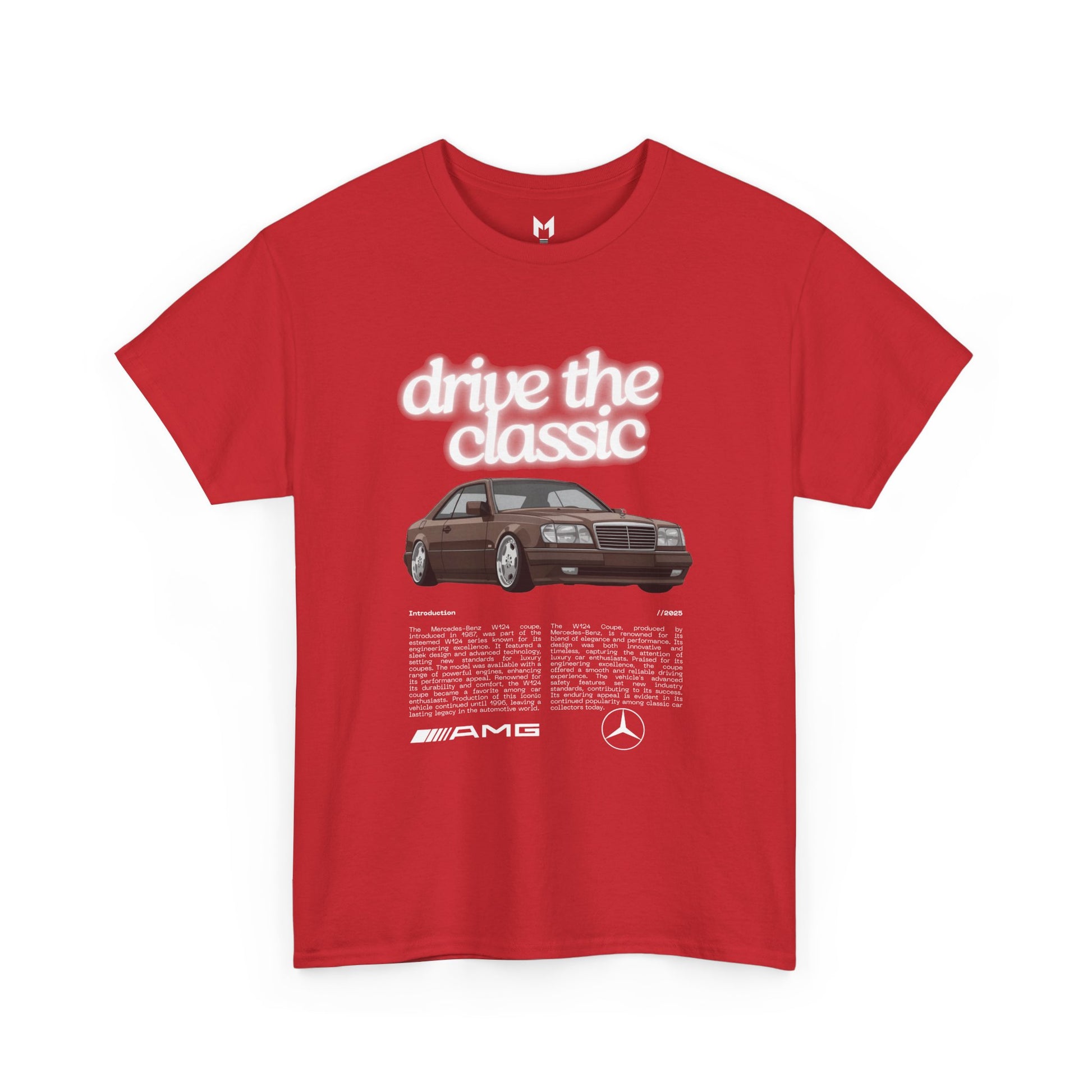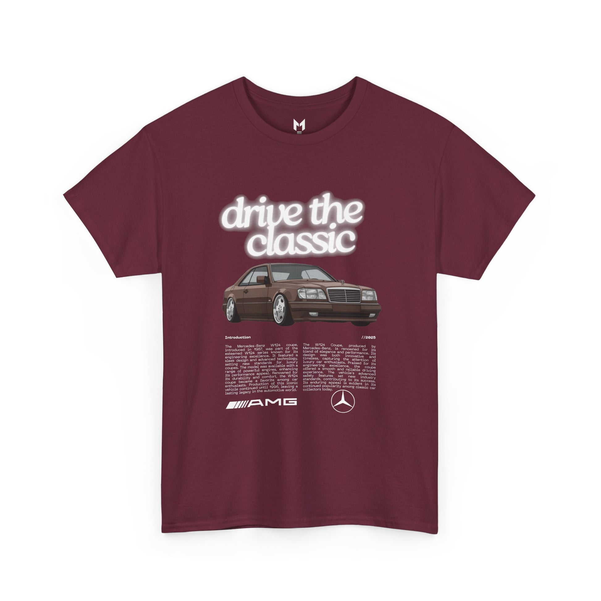 Vintage vibes with a retro classic design, perfect for those who appreciate timeless fashion. This unisex heavy cotton tee offers comfort and durability, making it ideal for casual wear or as a statement piece. Relevant for vintage enthusiasts, MB W124 fans, and those who enjoy unique, retro style. Great for everyday wear, casual outings, vintage car shows, and car enthusiasts.